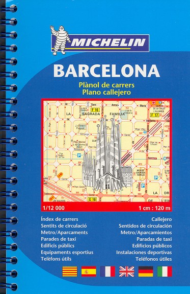 Encuentre todas las informaciones prácticas para recorrer Barcelona a pie, en coche o en bicicleta. El plano en espiral MICHELIN Barcelona, a escala 1/12 000 (1cm = 120m), es ideal para recorrer los barrios de la ciudad, de la Sagrada Familia a la playa . Para completar la información incluye transportes, sentidos de circulación, parkings, informaciones prácticas (edificios públicos, zonas deportivas, museos , teatros, teléfonos de utilidad...), etc. y un anexo con el índice de calles.