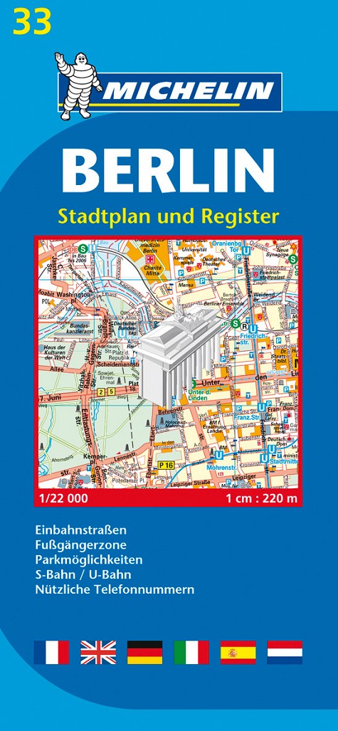 Encuentre todas las informaciones prácticas para recorrer Berlín a pie, en coche o en bicicleta. El plano MICHELIN Berlín, a escala 1/22 000 (1cm = 220 m), es ideal para recorrer la ciudad del castillo de Charlottenburg, las calles de moda y disfrutar de sus numerosos parques y museos. Para completar la información incluye: plano de transportes, calles peatonales, sentidos de circulación, parkings... y un anexo con el índice de todas las calles.