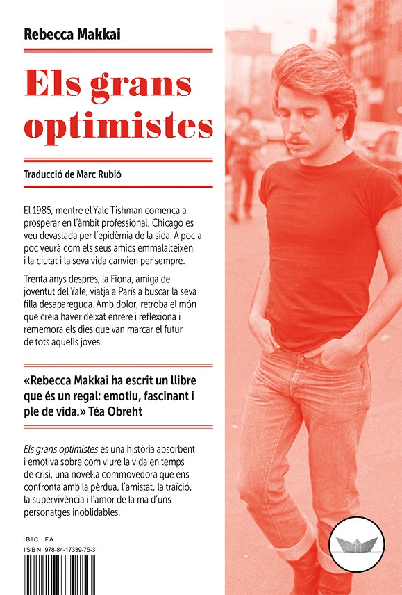 Els grans optimistes és una història absorbent i emotiva sobre com viure la vida en temps de crisi, una novel·la commovedora que ens confronta amb la pèrdua, l’amistat, la traïció, la supervivència i l’amor de la mà d’uns personatges inoblidables.