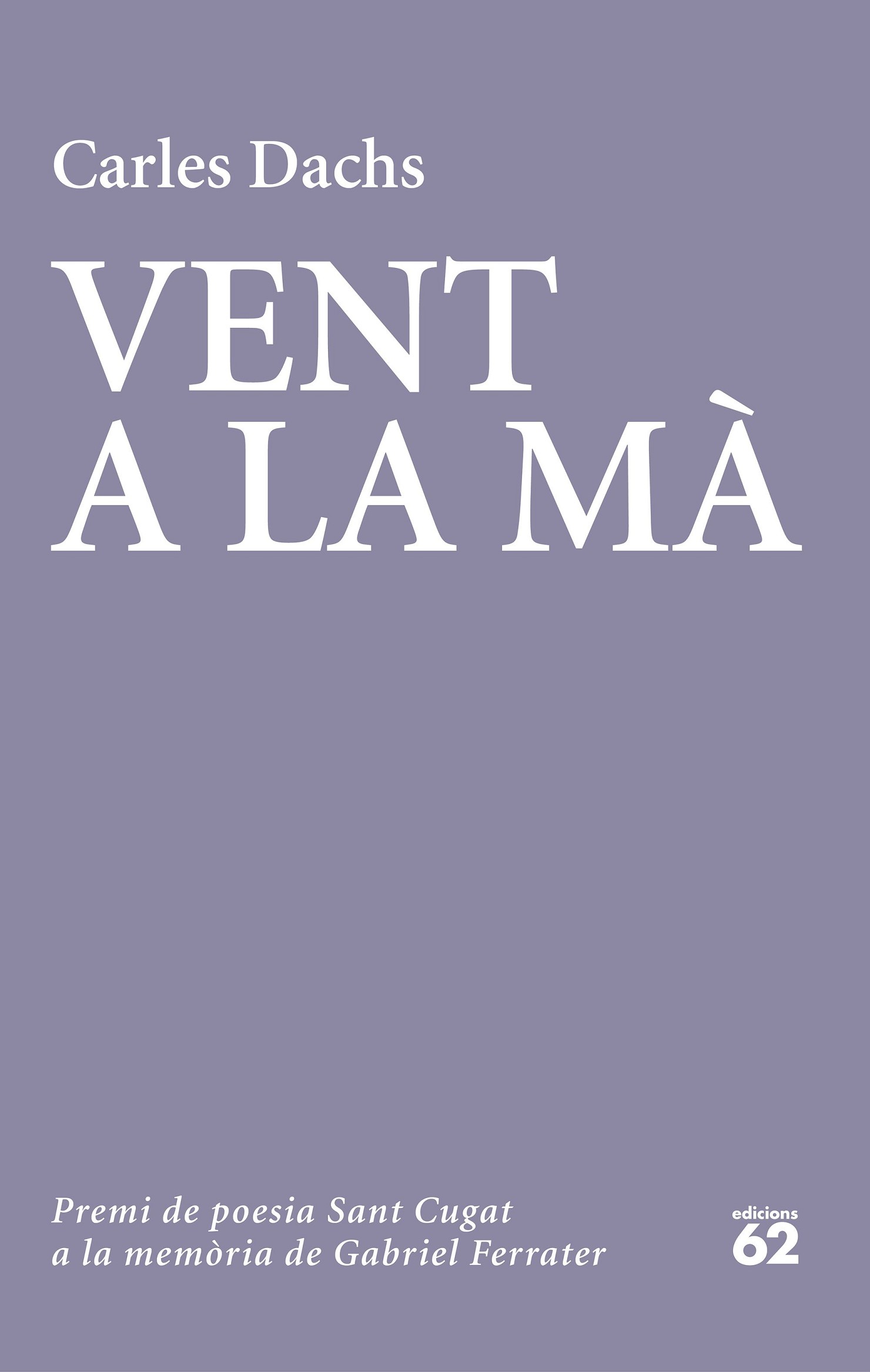 Vent a la mà, el tercer volum de versos de Carles Dachs (Santa Eugènia de Berga, 1987), ha obtingut el 19è premi de poesia Sant Cugat a la memòria de Gabriel Ferrater. És un llibre que deixarà empremta en els lectors per la riquesa plural del conjunt (dividit en tres parts de factura molt diversa), pel rigor formal que l’articula i per la força poètica amb què s’hi expressen les emocions i les idees.
