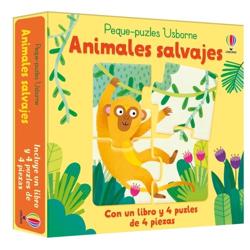Cuatro puzles de cuatro piezas y un libro dedicados a los animales salvajes. Los más pequeños se divertirán entre leopardos, jirafas, cebras, monos, elefantes y otros animales de este encantador libro con páginas rígidas.