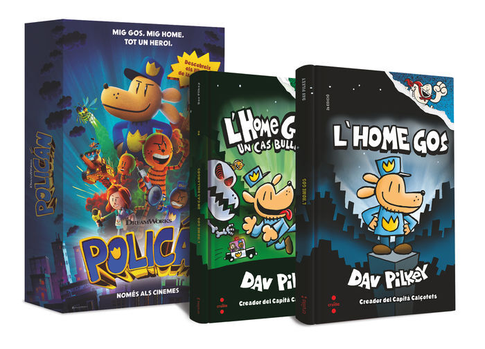 Ha arribat un nou heroi, l'Home Gos! Amb el cos d'un humà i el cervell d'un gos, protegirà la ciutat i lluitarà contra les terribles maleses del gat més dolent del món. Llibres plens d'acció, misteri, humor, bajanades i infermeres genials. Si vols saber d'on va sortir el malvat Pepet o com es van conèixer l'Home Gos i el Cap, aquest és el teu pack!